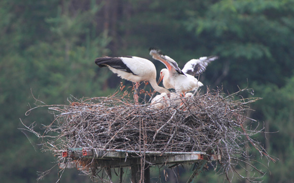 こうのとりの子供達はよく食べよく排泄します。子供だから可愛いので撮って見ました。