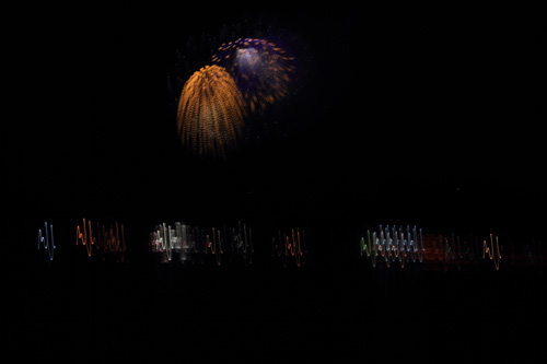 船上の花火撮影はちょっと無理があります。