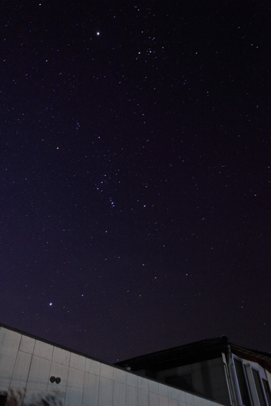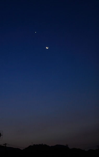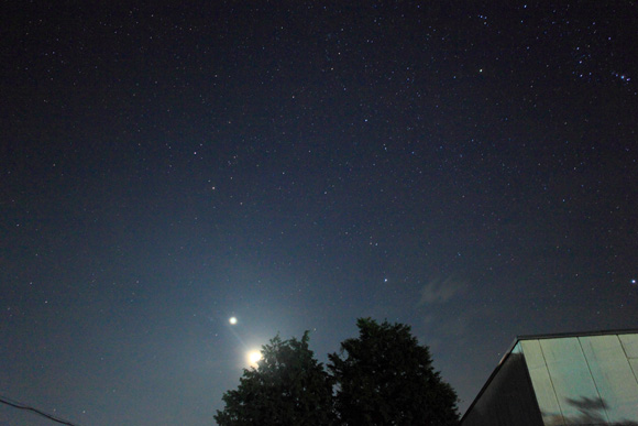 自宅に帰り二階から撮影しました。月と星がデートしていました。